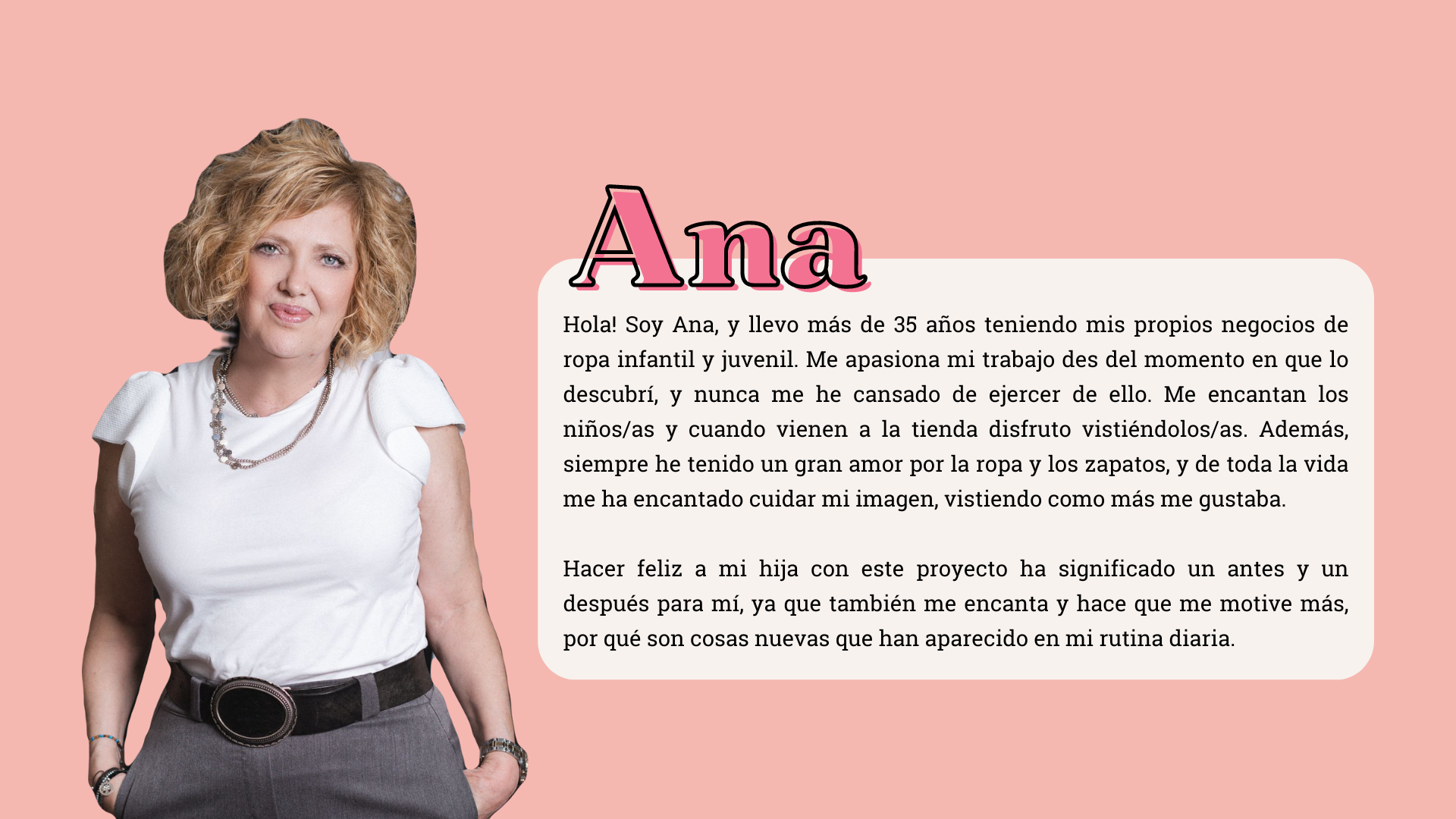 Ari’s Closet es un pequeño rinconcito en una tienda propia de ropa infantil y juvenil llamada ANNA. Ariadna, después de estar tantos años trabajando con su madre en la tienda de ropa infantil y ver su afán por la moda, pensó: ¿Y por qué no convencer a mi madre para poner ropa de chicas más grandes? Un rinconcito que permita además a las mamis, llevarse ropa también. Es por esto, que después de tanto tiempo pensándolo surgió Ari’s Closet, con prendas de ropa que no faltarían nunca en el armario de Ariadna. Detrás de esta página web hay dos personas, madre e hija, amigas, compañeras de trabajo, UN EQUIPO.