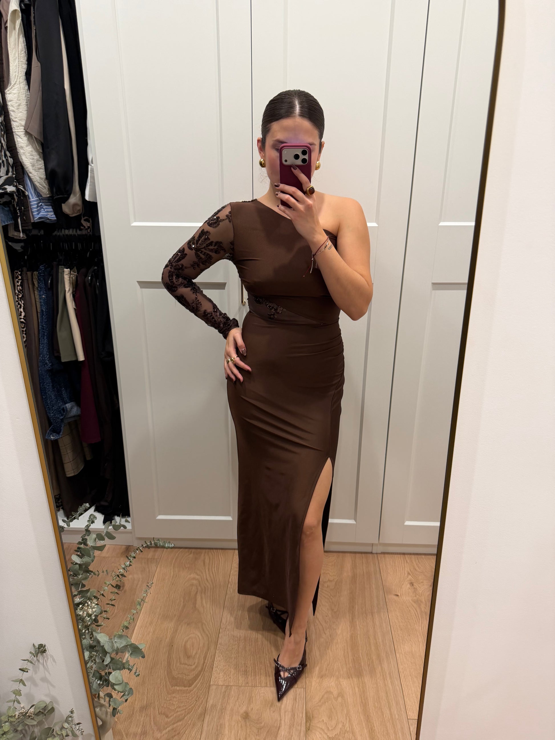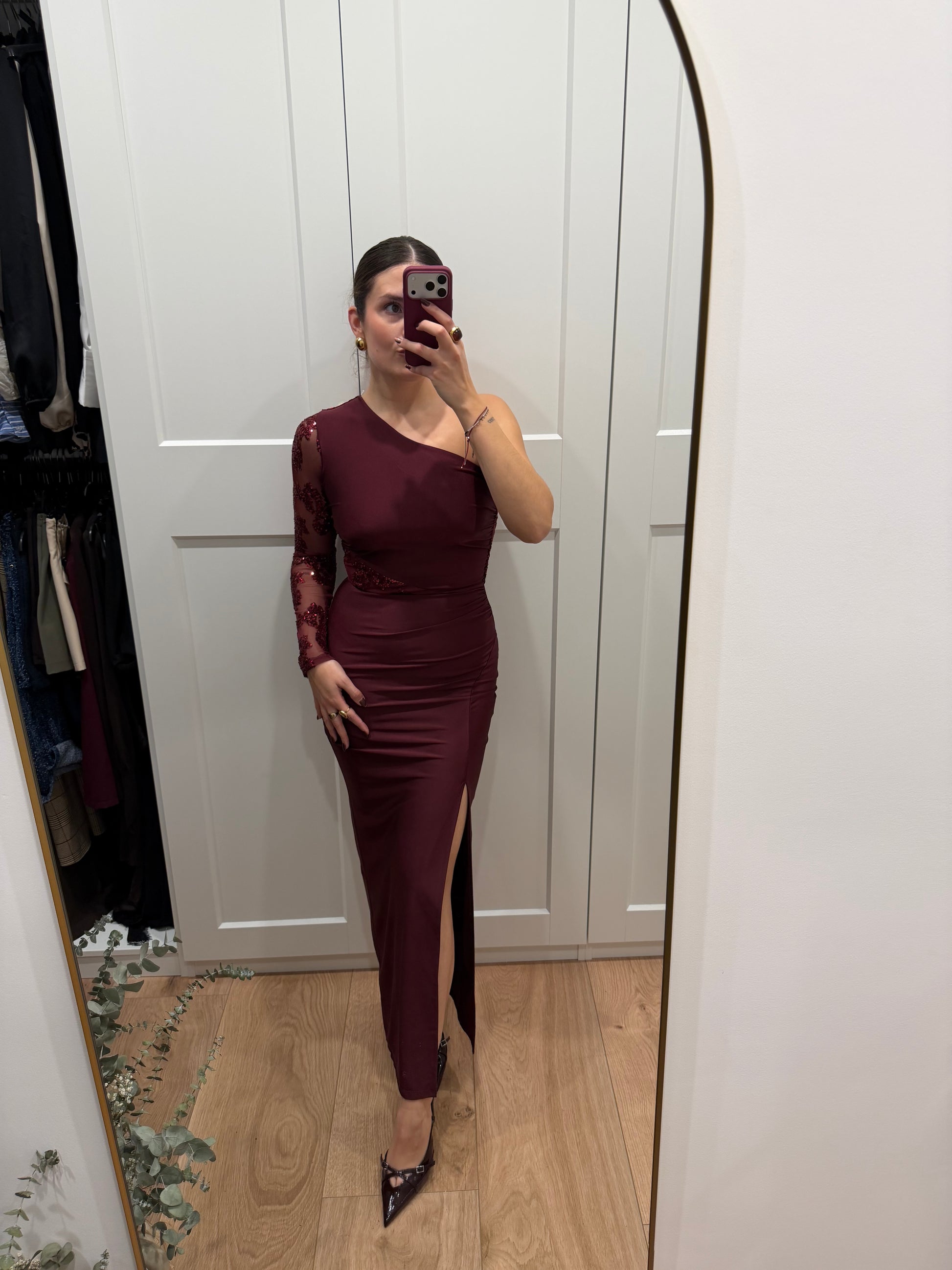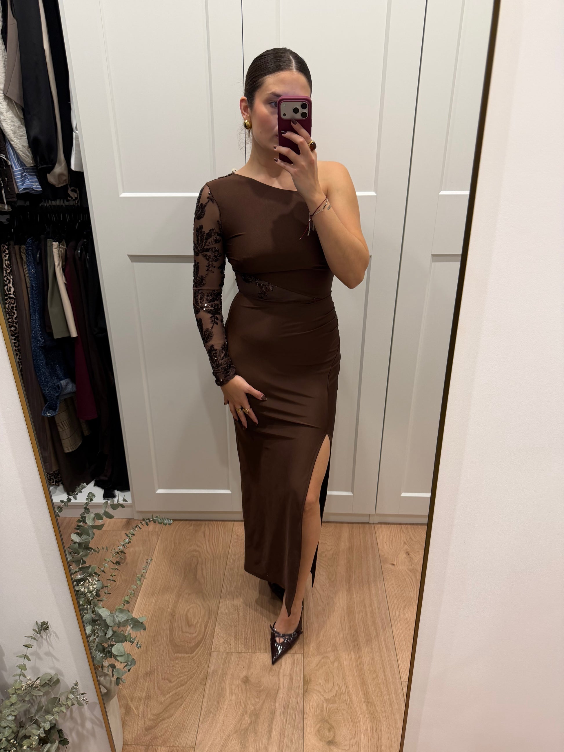Vestido largo de licra asimetrico